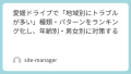 - 重大トラブル(死亡事故など):地域別に“重大化しやすい場所”を把握