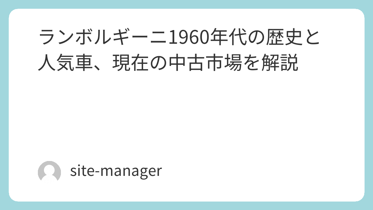 ランボルギーニの1960年代は、創業、量産GT、スーパーカー、4座GT、コンセプト提案というブランドの核が一気に固まった時代でした。350 GTがブランドの信頼を築き、400 GTが商業的な地盤を作り、Miuraが世界に衝撃を与え、EspadaとIsleroが製品レンジの厚みを示しました。現在の中古市場で1960年代車が特別視されるのは、この時代の一台一台が単なる旧車ではなく、ランボルギーニというブランドの設計図そのものだからです。 (Lamborghini.com)