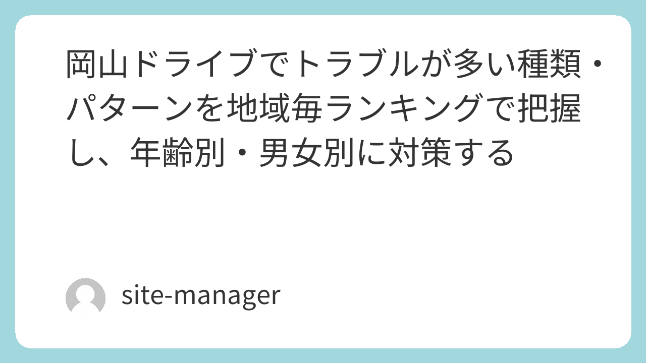 一方で「地域毎にトラブルが多い場所はどこか」「トラブルの種類やパターンは何か」「年齢別・男女別で注意点は変わるのか」を整理しないまま走ると、事故や故障などの“想定外”に直面しやすくなります。
