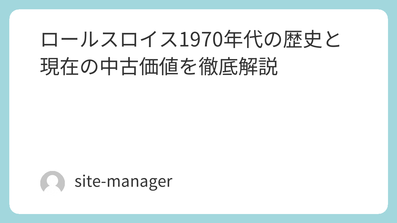 ロールスロイス1970年代の歴史と現在の中古価値を徹底解説